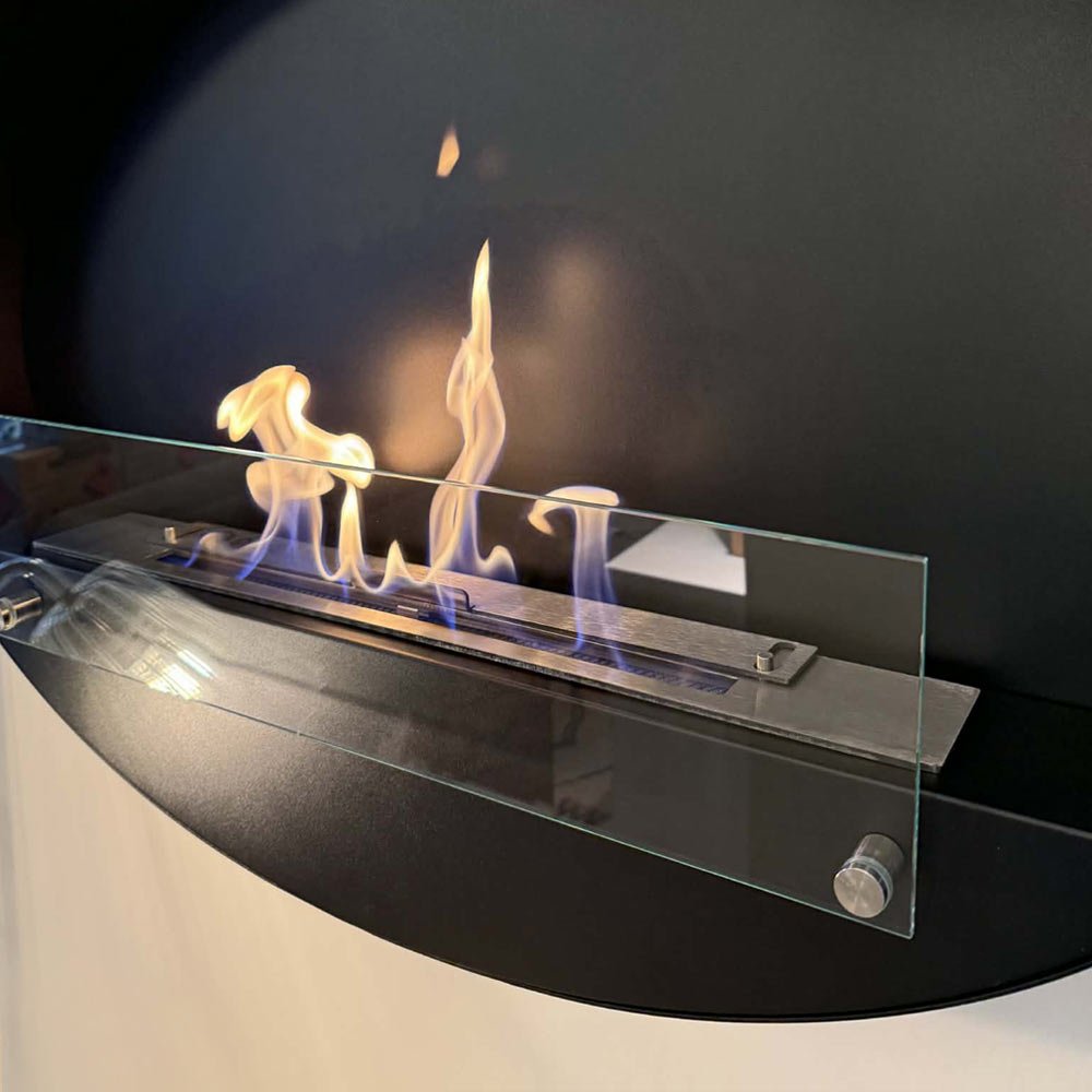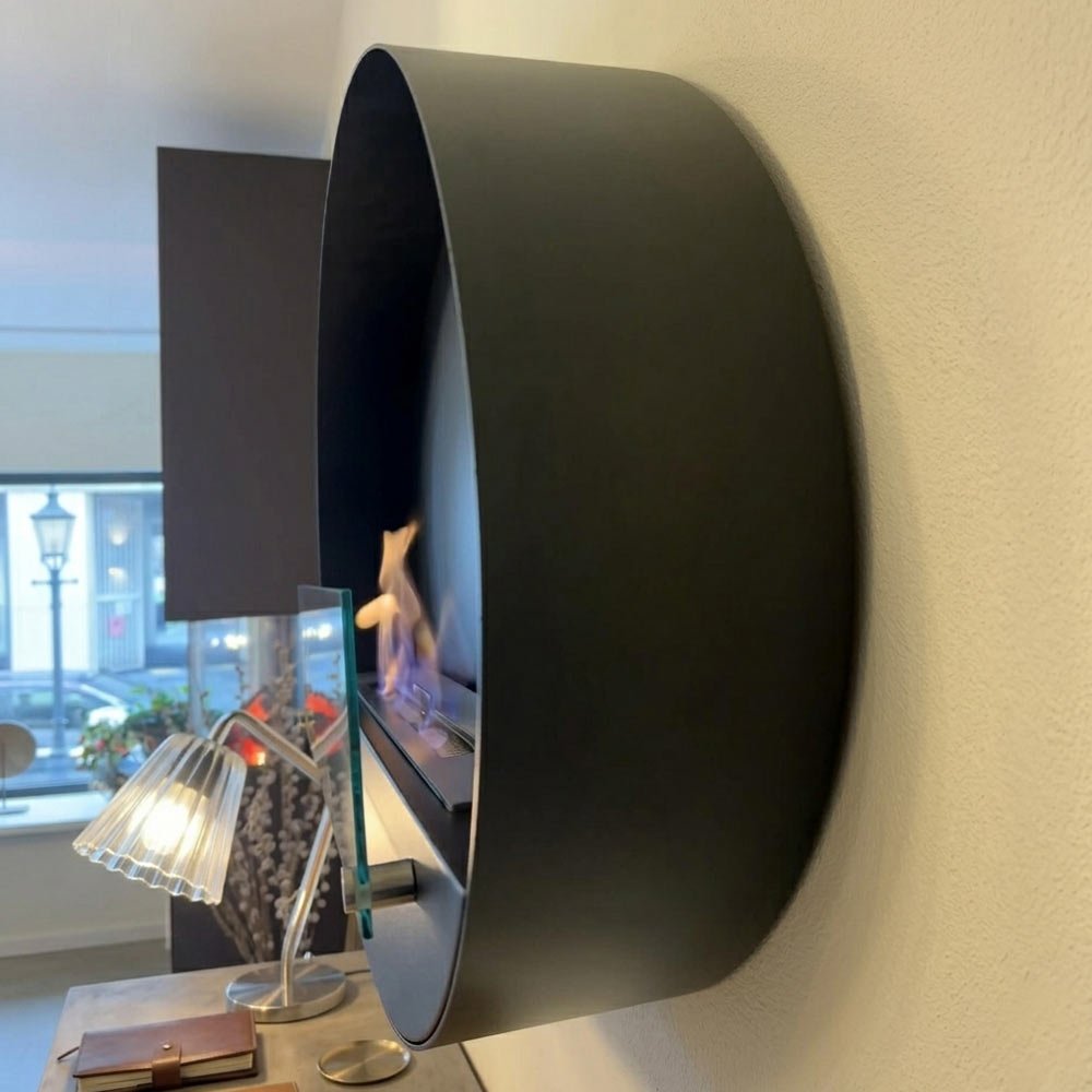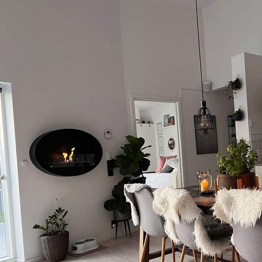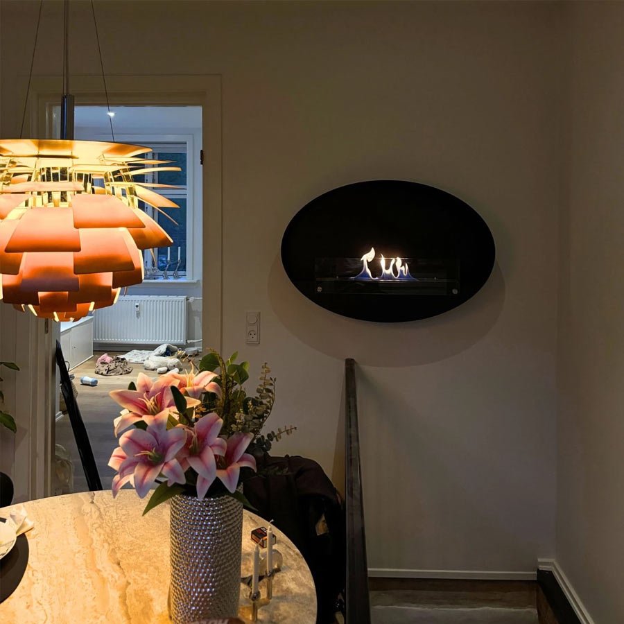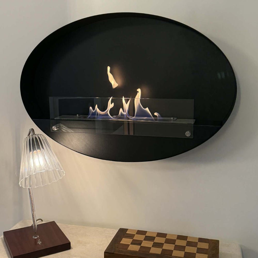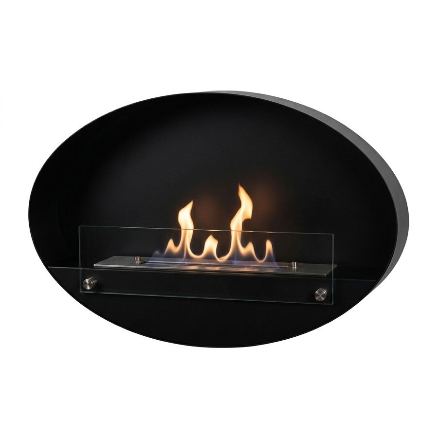 Cheminée murale bioéthanol au design ovale élégant, Maryland est facile à installer. Sbioétans conduit et chauffante, cette cheminée est un atout décoratif à part entière !