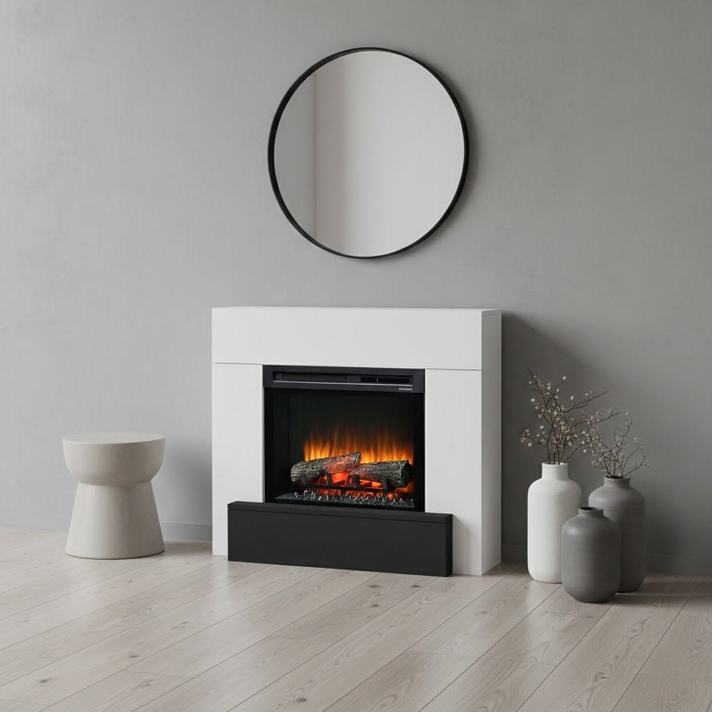 - Design intemporel avec son manteau décoratif blanc et noir et son insert électrique moderne. Parfait pour tous les intérieurs !
