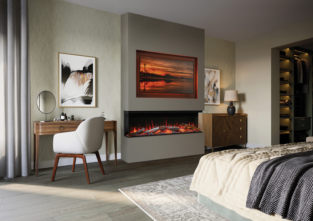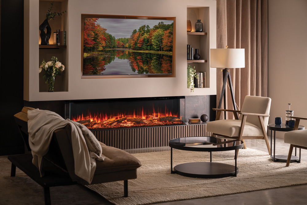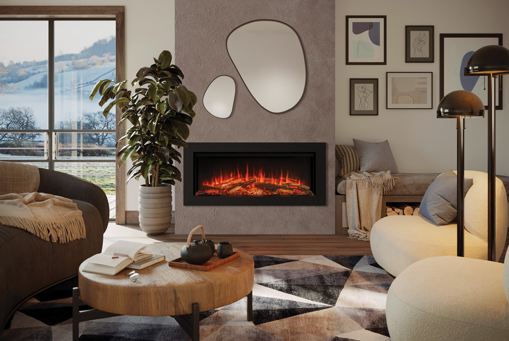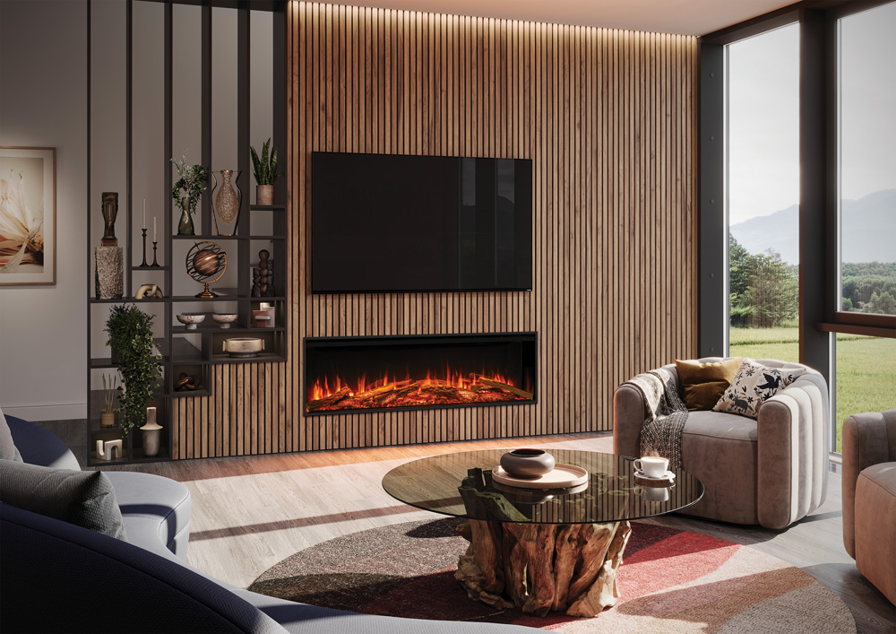 La technologie Chromalight® Plus de l’Avita offre une personnalisation avancée de l’éclairage du lit de braises, des bûches et de l’éclairage inférieur, à harmoniser ou contraster avec cinq effets de flammes. Chaque élément propose cinq niveaux de luminosité, créant une profondeur visuelle immersive et raffinée.