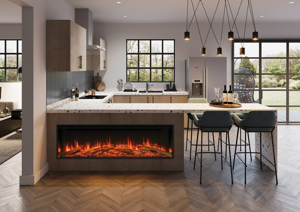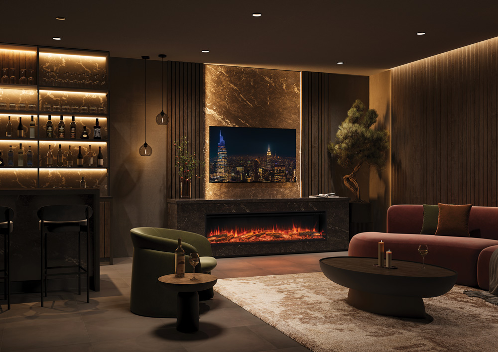 Ces deux cheminées offrent des flammes immersives de grande qualité, l’Onyx Avita se distinguant par des flammes légèrement plus fournies mais moins épaisses. Elle intègre également un module sonore ainsi qu’un cadre intégré qui facilite l’encastrement, sans nécessiter de coffrage venant recouvrir la cheminée, pour une installation plus simple et une finition intégrée.